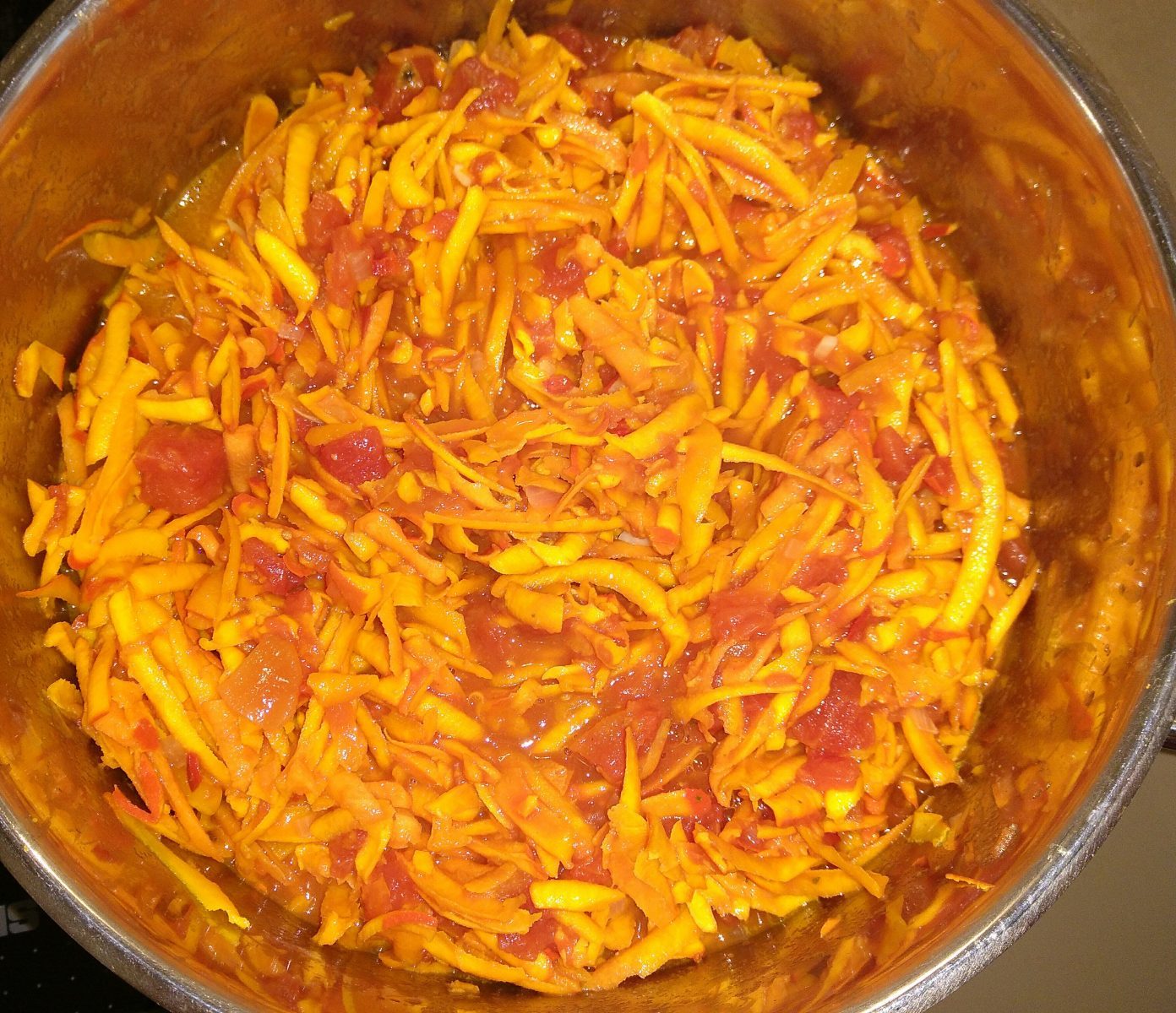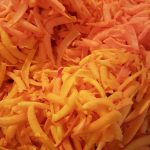 Karotten in der Küchenmaschine (oder per Hand) klein raspeln.