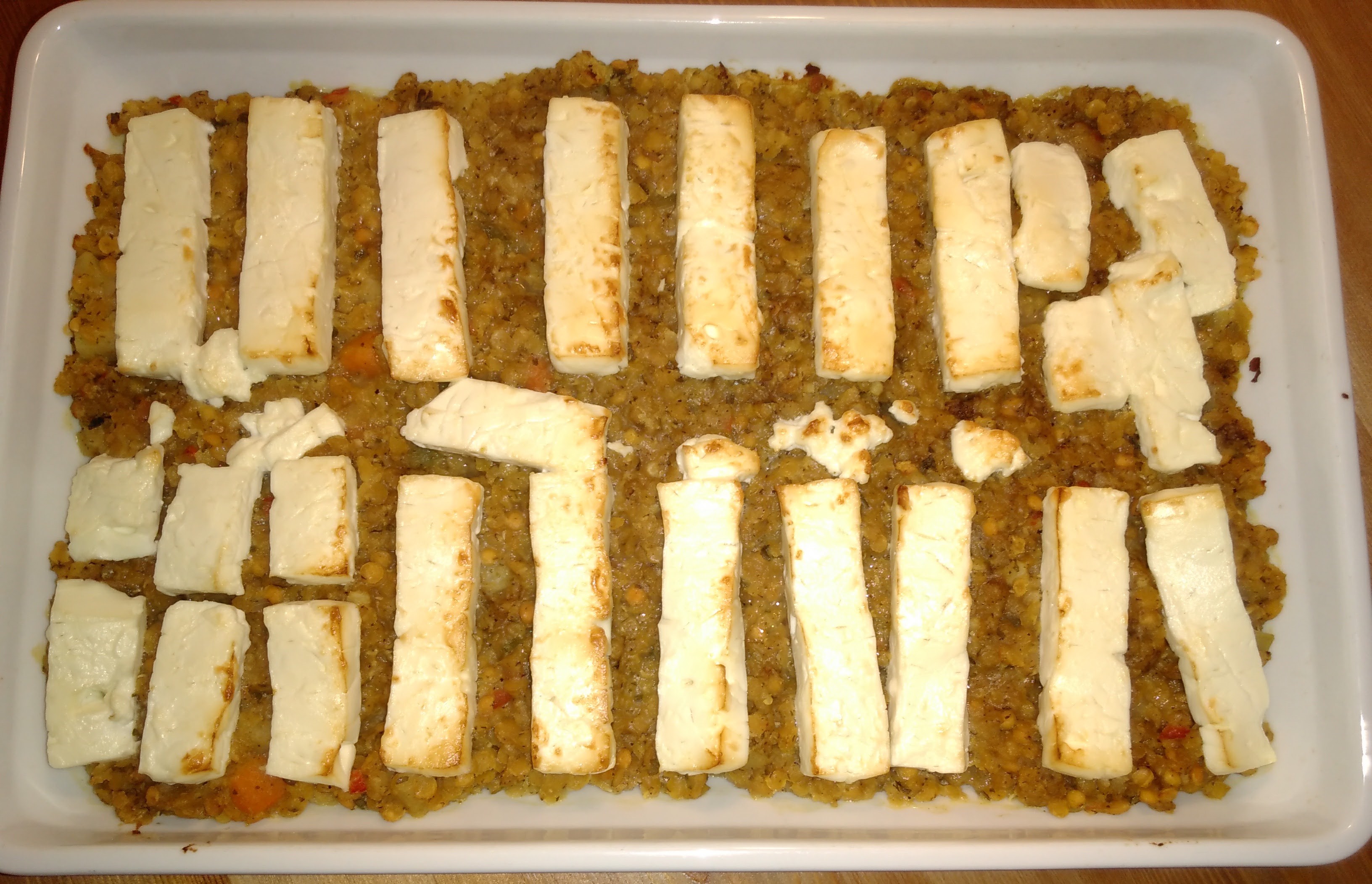Super leckere und eiweißhaltige mit Feta überbackene rote Linsen
