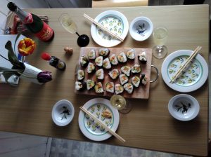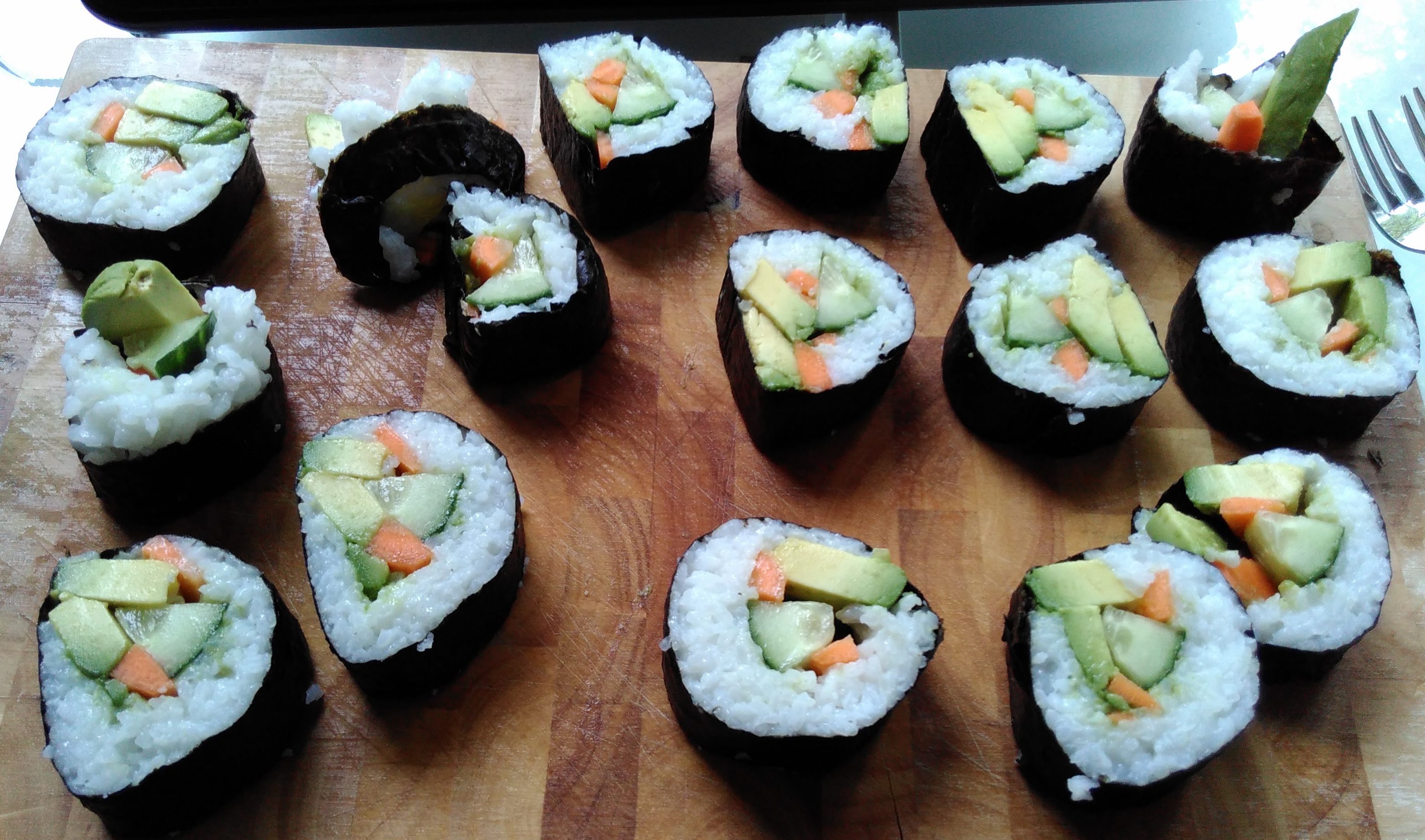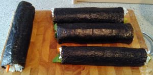 2.) Die Sushi-Füllung vorbereiten und das Sushi rollen: